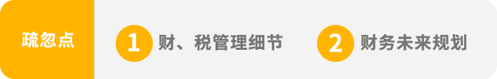 1、财、税管理细节;2、财务未来规划;这会在企业遇见“税务稽查”“融资并购”“挂牌上市”等大的动作时候,导致企业在各种关键动作过程中受限制,影响企业整体的发展。